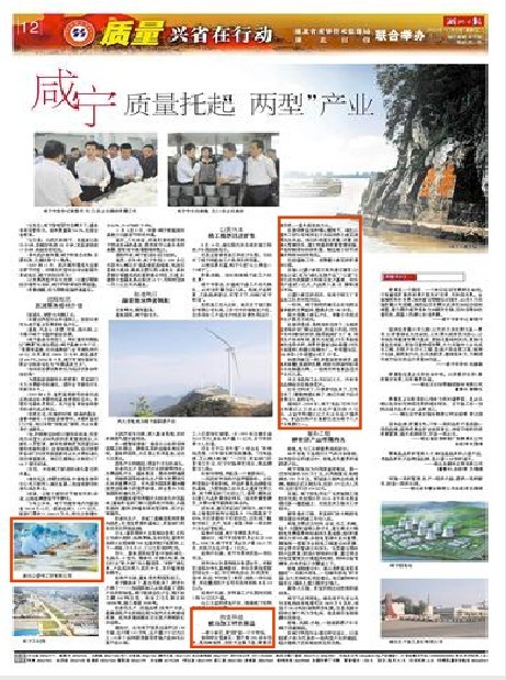 湖北日報2009116日刊第12版在題為咸寧質(zhì)量托起兩型產(chǎn)業(yè)的專題中大篇幅的報導(dǎo)了我司為當?shù)亟?jīng)濟發(fā)展、產(chǎn)業(yè)升級所做出的突出貢獻。以下為報導(dǎo)原文摘錄: